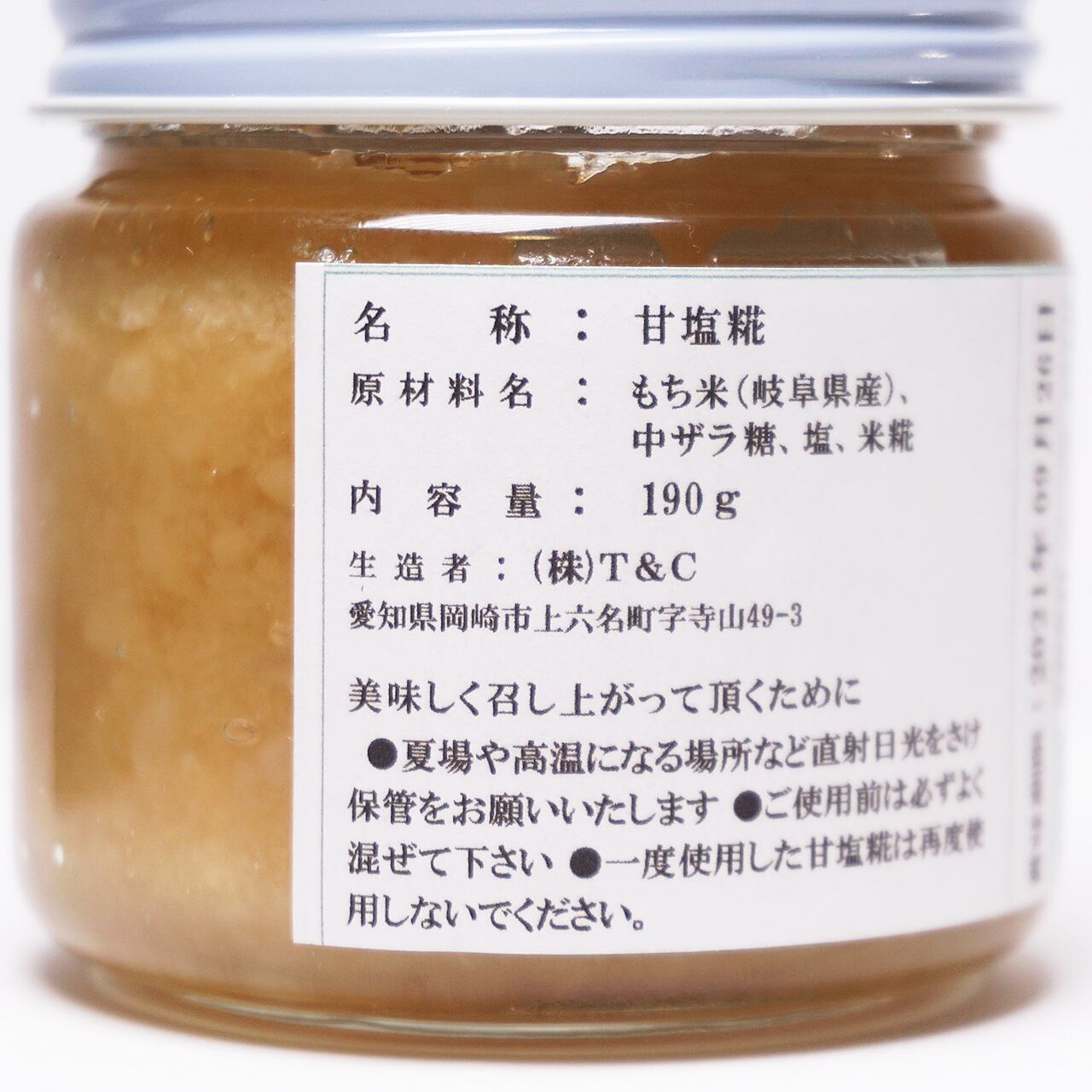 甘塩糀で使用している原材料は、もち米・中ザラ糖・塩・米糀のみ。